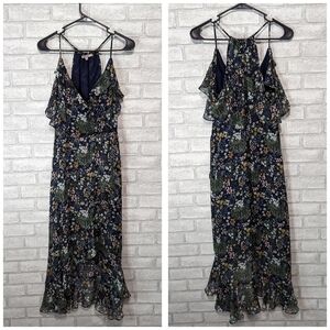 Miss Me Navy Microfloral Tank Cold Shoulder Wrap High-low Dress Size Small