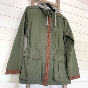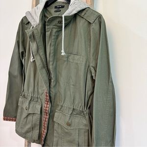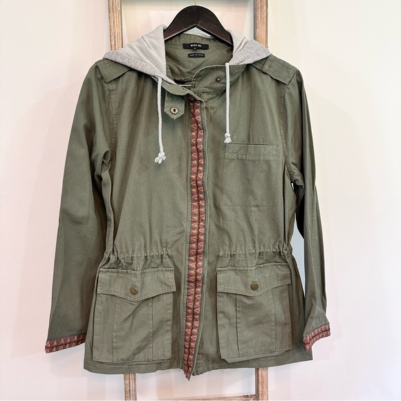 Miss Me Olive Green Hooded Utility Jacket, Size Small