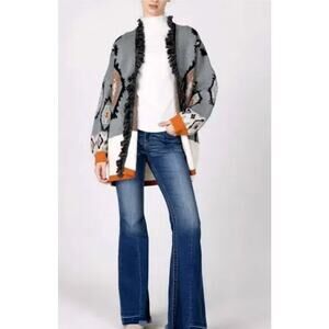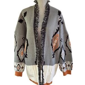 Miss Me Oversized Aztec Fringe Cardigan Large Cozy Boho Sweater