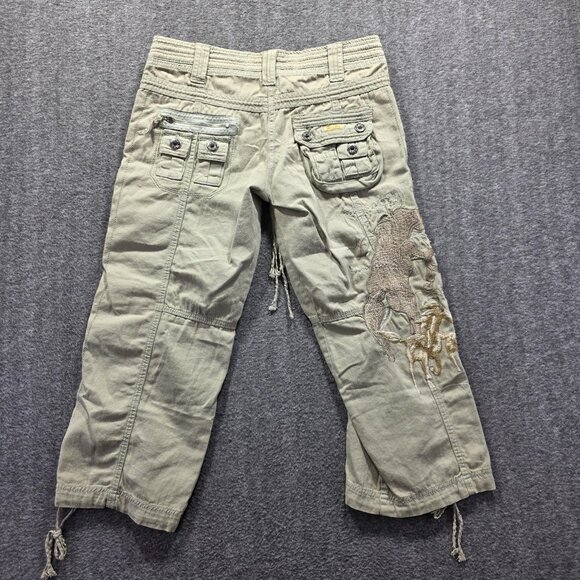 Miss Me Pants Womens Small Green Cargo Capri Embroidered Horse Western Boho