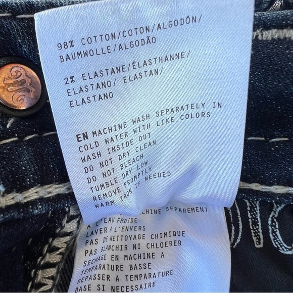 Miss Me Raleigh Stitched Bootcut Jeans. Women’s size 26. Style M3867B. Medium Wash with whiskering details. 5 pocket design with rhinestone rivets, saddle stitch border accents, faux flap pockets, nice white leather patch. This style currently retails for $109.