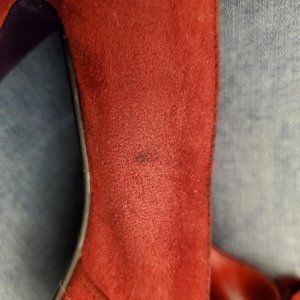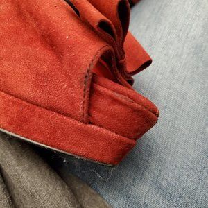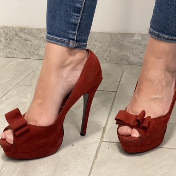 Miss Me Red Suede Peep Toe Platform Heel 8 1/2