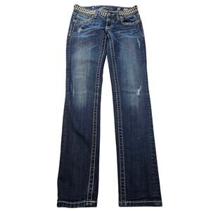 Miss Me Rhinestone Studded Jean's Jp513054 Skinny bling 26 / 29 y2k thick stitch