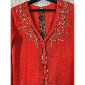 Miss Me Sequin Open Back Red Cardigan Flowy Breathable - Medium