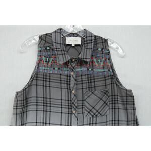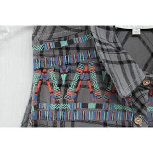 Miss Me Shirt Dress Medium Gray Embroidered Ombre Boho Flannel High Low Tunic