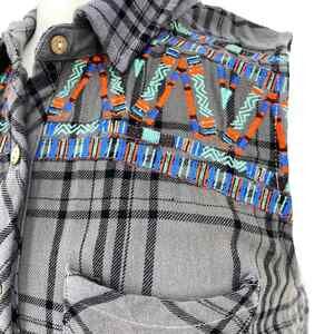 Miss Me Shirt Dress Small Gray Embroidered Ombre Boho Flannel High Low Tunic