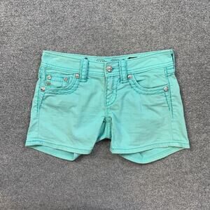 Miss Me Shorts Womens 25 Mint Studded Low Rise Denim Flap Pocket Stretch Zip Fly
