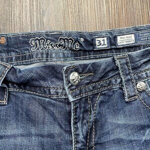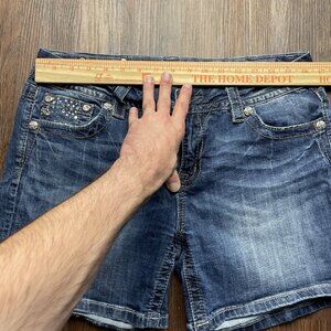 Miss Me Shorts Women's 31 Easy Cuffed Embellished Pockets Whiskered Denim Blue. Condition is Pre-owned - Excellent. Shipped with Standard Shipping.