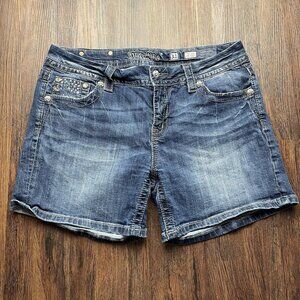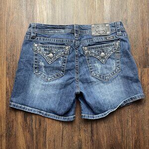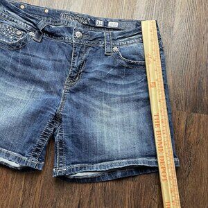 Miss Me Shorts Women's 31 Easy Cuffed Embellished Pockets Whiskered Denim Blue