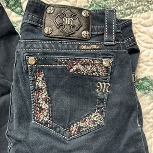 Miss Me Signature Blue Skinny Jeans with Embroidered Back
