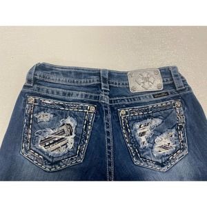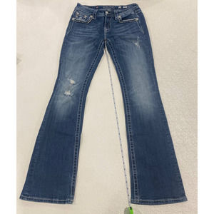 Miss Me Signature Boot Cut Jeans Bling Crystal Sz 28 Embellished Embroidered