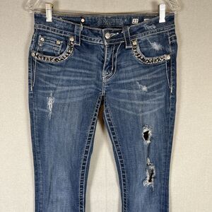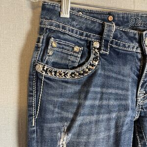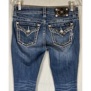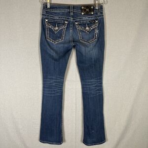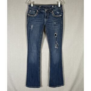 Miss Me Signature Boot Jeans Size 27 JP7256B 34" Flap Pocket Bling Distressed