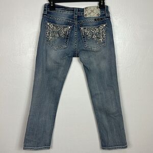 Miss Me Signature Cropped Low Rise Embroidered Jeans Capri Size 25