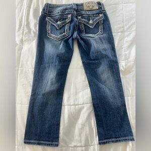 Miss Me Signature Cuffed Capri Distressed Jeans Size 26 Low Rise EUC Bling