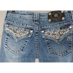 Miss Me Signature Cuffed Capri Jeans 26 Embellished Embroidered Flap Pockets