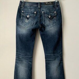 Miss Me Signature Distressed Flap Pocket Slim Boot Jeans Blue 25