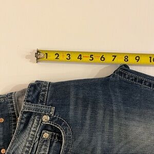 These Miss Me bootcut jeans in size 28 feature stunning rose embroidery and bead embellishments on the back pockets, rhinestone-accented hardware, and classic Miss Me signature detailing. With a flattering rise and just the right amount of stretch, they offer both comfort and eye-catching style. Gently used and in great condition.