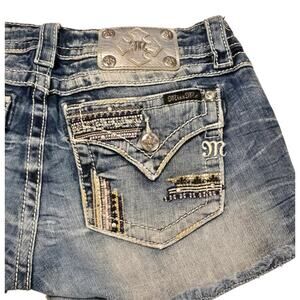 Miss Me Signature Short Womens Size 29 Blue Distressed Rhinestones Embroidery