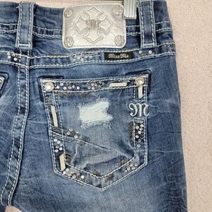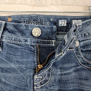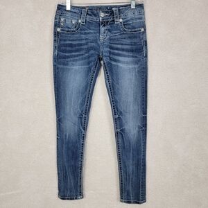 Miss Me Signature Skinny Bling Distressed Pockets Low Rise Denim Blue Jean Sz 27