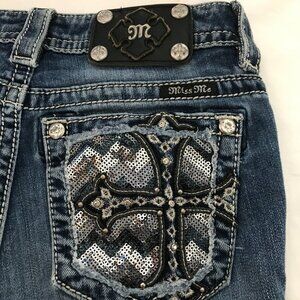 Miss Me Signature Skinny Jeans Women 25 Blue Mid Gothic Cross Sequins Rhinestone 15435
