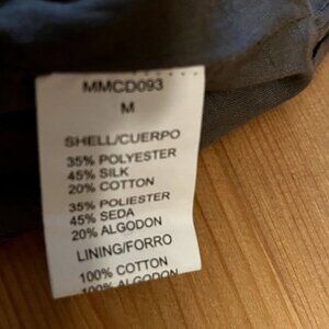 - 45% Silk, 35% Polyester, 20% Cotton. See the photo for more material info