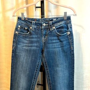 Miss Me Size 26 Denim Rhinestone Sequin Leather Boot Cut Blue Jeans (0349)