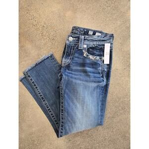 Miss Me Size 27 Cropped Jeans - Embellished Pockets, Frayed Hem, Mid-Rise
