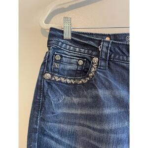 Miss Me Size 29 Dark Wash Jeans Signature Rise Boot Pockets Distressed Embroidered