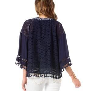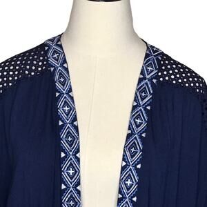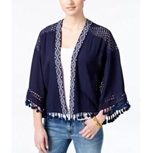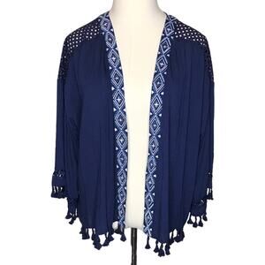 Miss Me Size Large-Navy Open Front Kimono Embroidery and Tassels-New With Tags