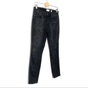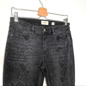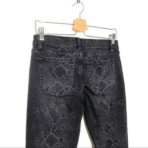 Black with python detail pattern throughout. Stretch. Skinny. Size 27. 14.5” waist. 28” inseam.