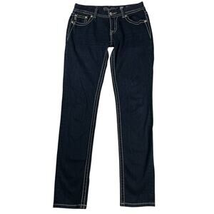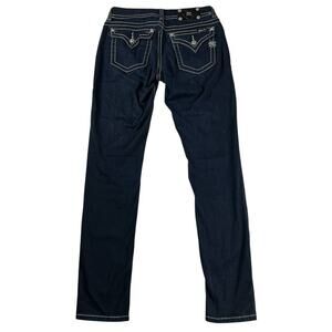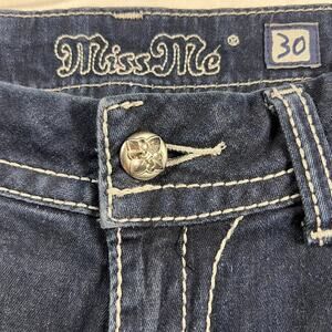 Miss Me Skinny Jeans Dark Wash Embellished Flap Pockets Thick Stitching Size 30