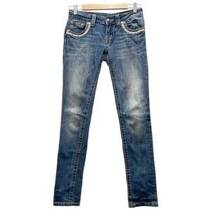 Miss Me Skinny Jeans Low Rise Back Flap Silver Studded Bling Y2K Denim Size 26