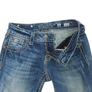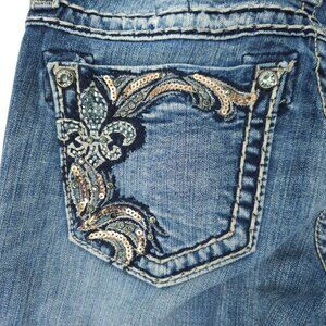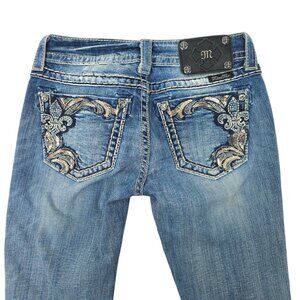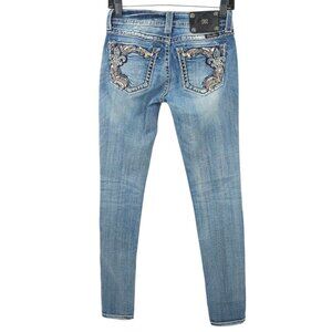 Miss Me Skinny Jeans READ Womens 26 Rhinestone Pockets Low Rise Distressed Denim