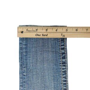 - Pre-owned condition - tag reads inseam 32, but inseam measures 31" - Back pockets are missing some rhinestones (photos 2, 7-8) - otherwise, normal signs of wear.