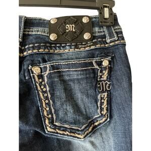 As with all Miss Me Jeans, distressing, thigh sanding and