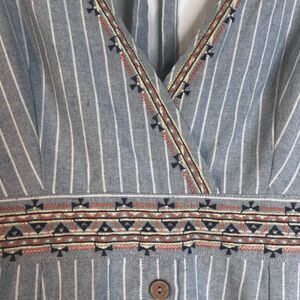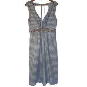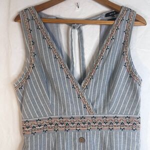 Miss Me Sleeveless Linen Blend Dress Embroidered Striped Low Back Size MD Boho