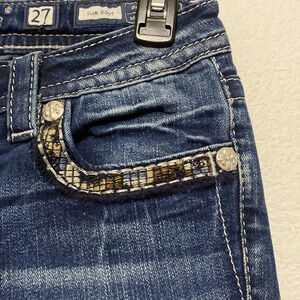 Miss Me Slim Boot Denim Bling Embellished Medium Wash Jeans Size 27