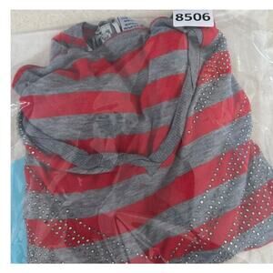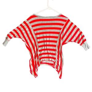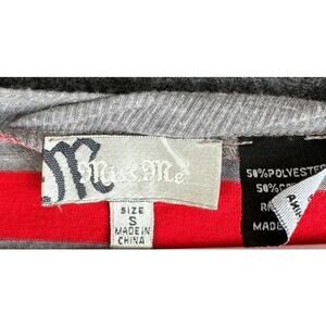 Miss Me Small Top Striped Red Gray Bling Asymetrical Shark Hem Chevron Top