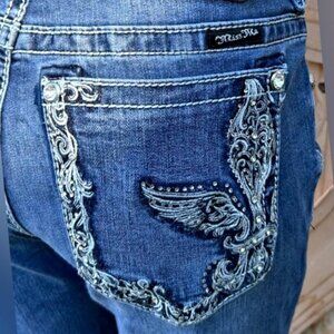 Miss Me Stretch Denim Mid Rise Embellished Bootcut Jeans~31~