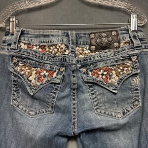 Title: Miss Me Studded Embellished Jeans Distressed Signature Bootcut Stretchy Low Rise