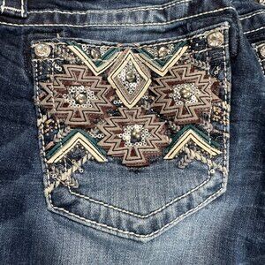 Miss Me Studded Embroidered Dark Wash Bootcut Jeans P29