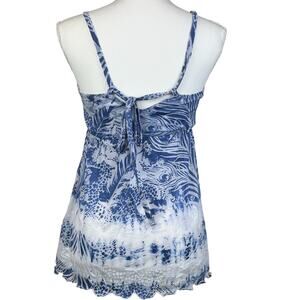 Miss Me Top Women Size Small Blue Burnout Gausy Embroidered Sheer Costal Blouse