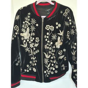 Miss Me Velour Embroidered Bomber Jacket Black with red trim Size Small