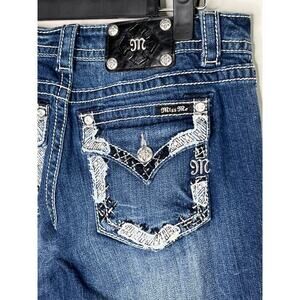 Miss Me Vintage Jeans Relaxed Boot XP7547B Rhinestone Silver Embellished Pocket