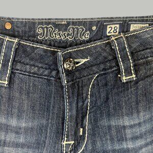 Miss Me Wide Leg Jeans Sz 28 W Dark Wash Distressed Denim Timeless Bold Stitch EUC