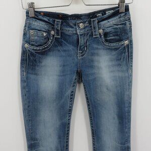 Miss Me Women 25 Signature Bootcut Boot Blue Denim Jeans Embroidered Rhinestones