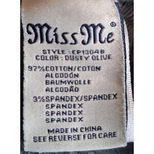 Miss Me Women 27 Dusty Olive Gray Embroidered Cargo Pocket Straight Leg Pants