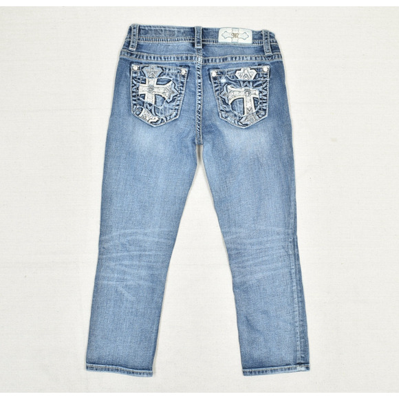 Miss Me Women Cotton Blue Size 26 Mid rise Easy Crop Jeans Denim Solid Embelish