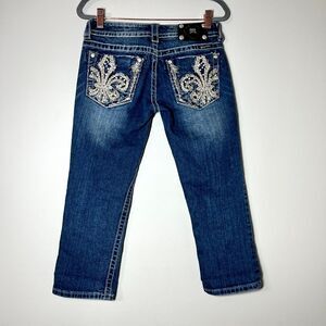 Miss Me Women Jeans 26x22 Blue Low-Rise Fleur-de-Lis Pockets Stretch Denim Capri