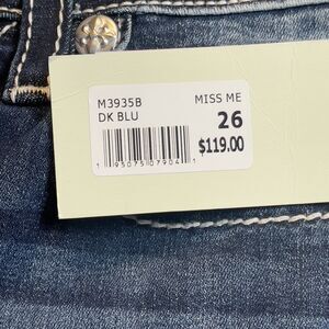 Miss Me Women's Size 26 X 34 Paisley Dreaming Mid Rise Bootcut Stretch Denim Jeans Dark Wash Embroidered Rhinestones NEW.